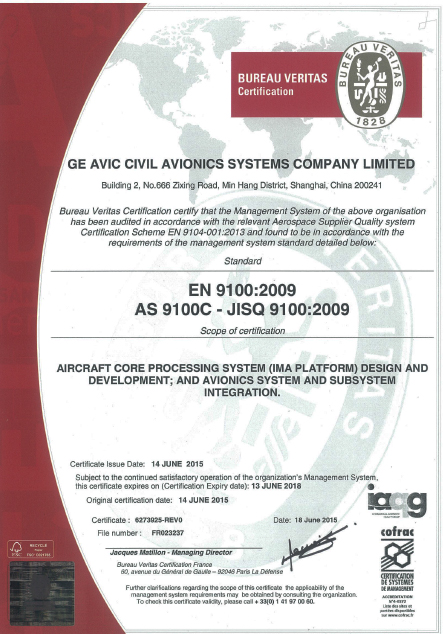 昂際航電榮獲AS9100國際航空航天質(zhì)量管理體系認(rèn)證